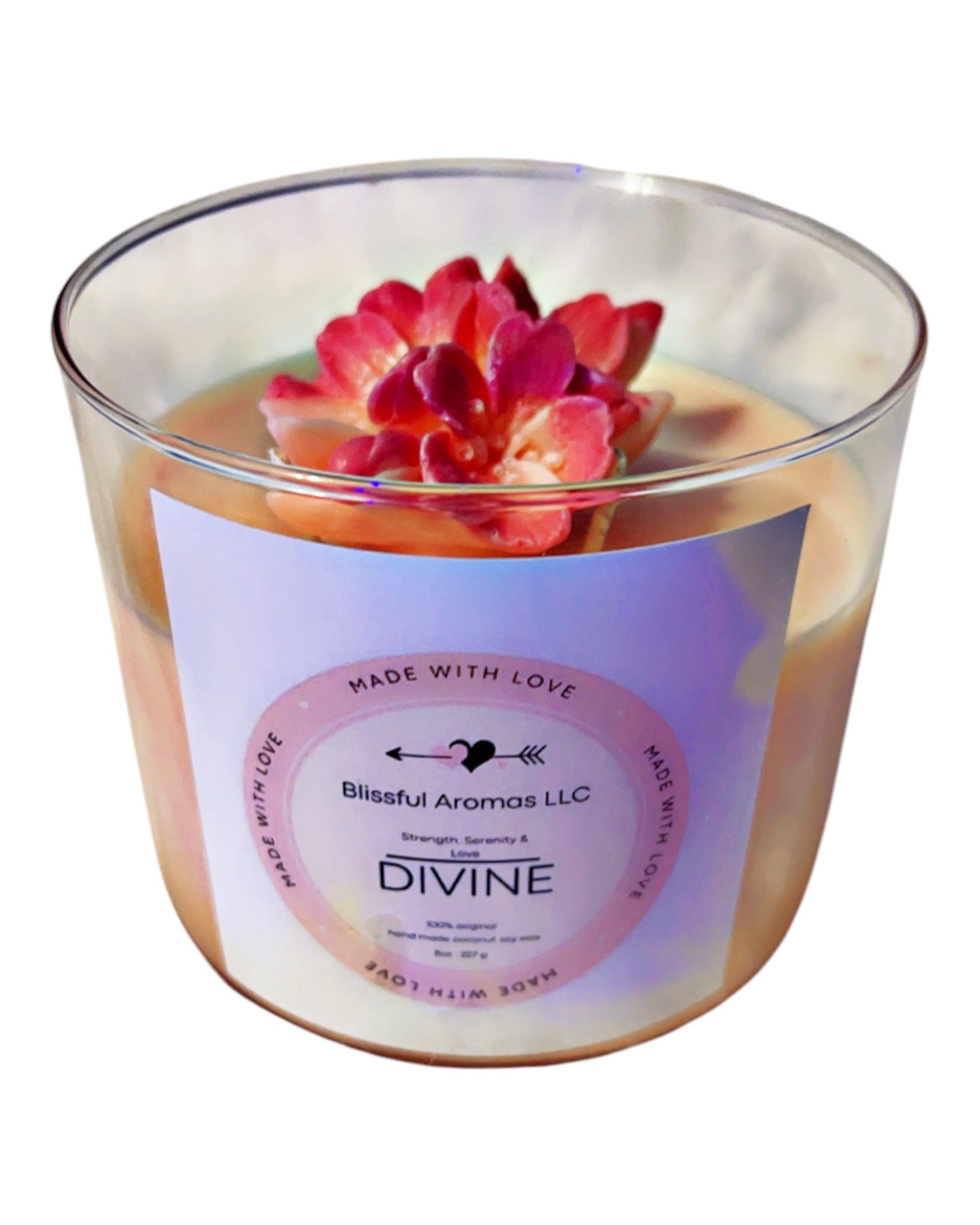 Infused with a harmonious aroma, Divine is perfect for uplifting your spirit, energizing your space, or creating a tranquil moment of reflection. Its soft glow and captivating design make it not just a candle, but a centerpiece of peace and beauty.