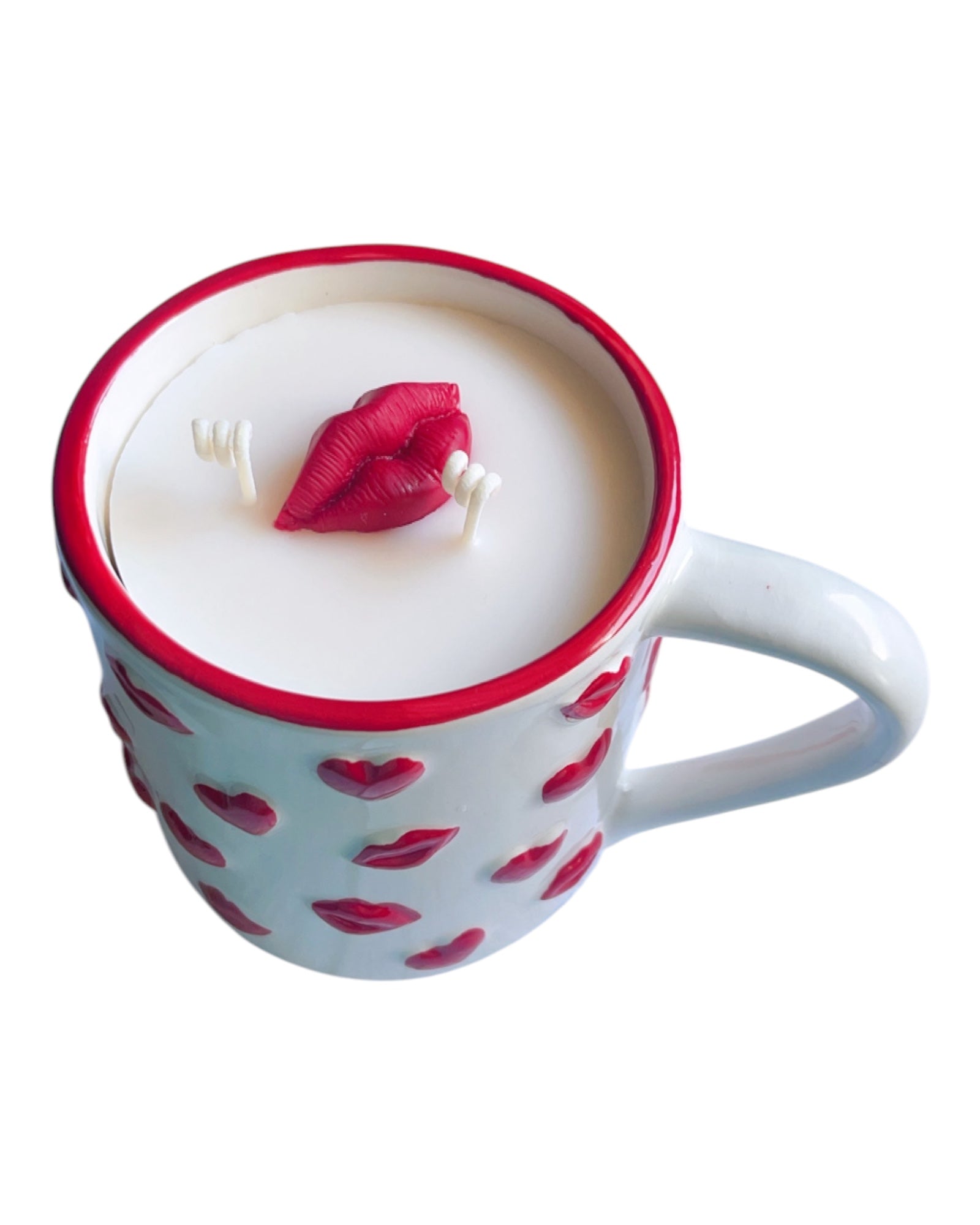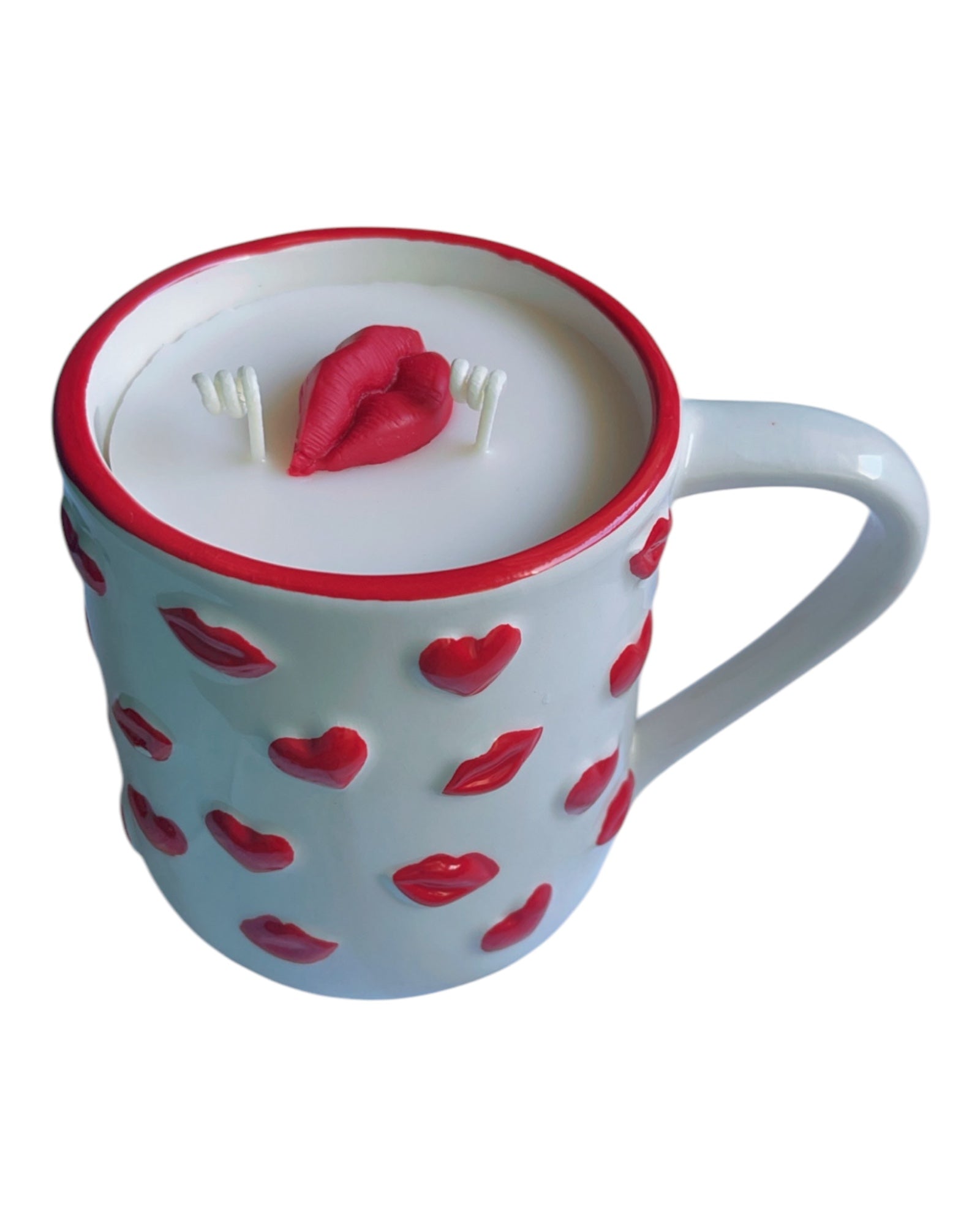 A candle that speaks the language of love! Sealed with a Kiss comes in a charming white and red ceramic cup, adorned with playful red lips and hearts, perfect for celebrating romance and passion. Its soft pink wax is infused with the warm, sensual aroma of Amber Element, creating an inviting and cozy ambiance.